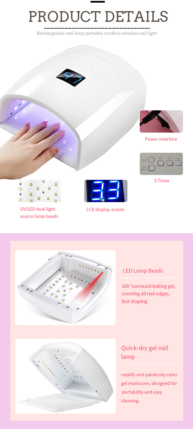 Produk ini memastikan pengeringan lem merata tanpa penyusutan. Sumber cahaya gandanya memberikan pemanasan lembut untuk mencegah perubahan warna pada tangan dan ketegangan mata, cocok untuk tangan dan kaki, memberikan hasil pengeringan yang sangat cepat.