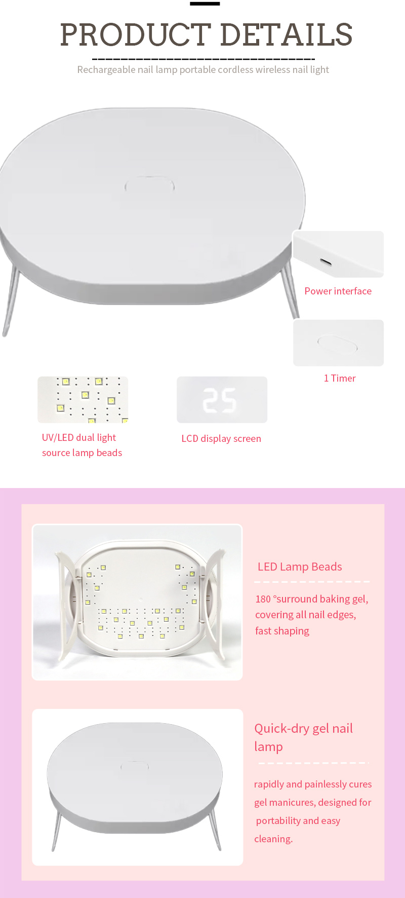 • Bohlam LED berdaya tinggi untuk proses pengeringan gel yang cepat dalam 10 detik