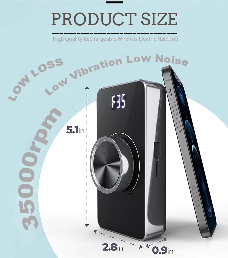 Bor kuku elektrik eksfoliasi 35.000 rpm ini memiliki 2 pilihan warna, hitam/putih/abu-abu/biru/merah/merah muda/oranye, warna penuh warna.