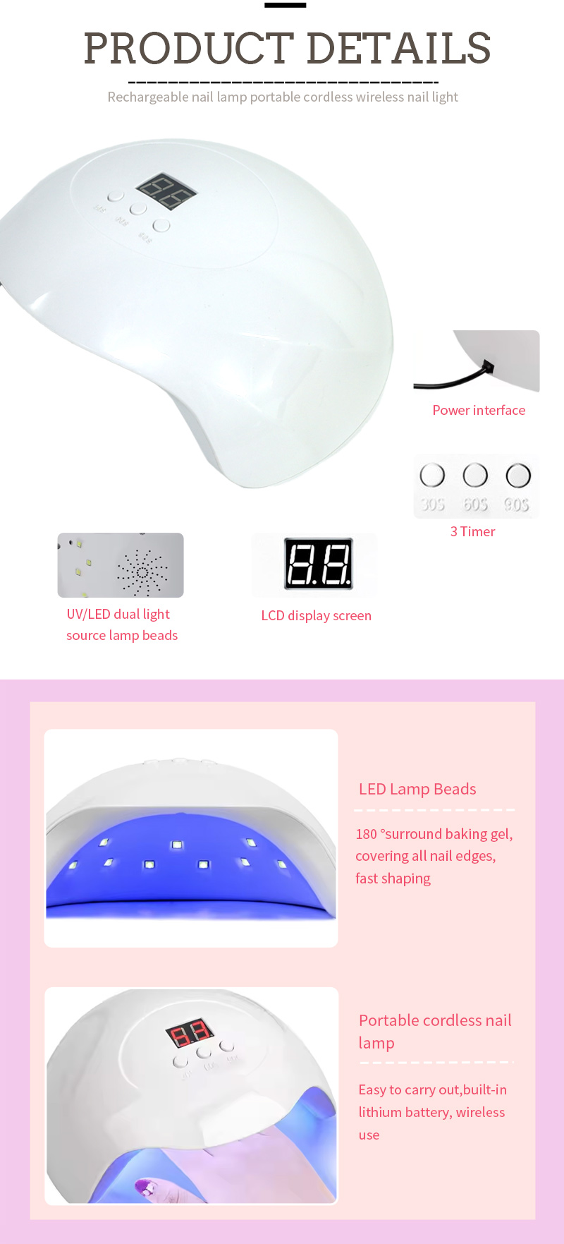Produk ini memastikan pengeringan lem merata tanpa penyusutan. Sumber cahaya gandanya memberikan pemanasan lembut untuk mencegah perubahan warna pada tangan dan ketegangan mata, cocok untuk tangan dan kaki, memberikan hasil pengeringan yang sangat cepat.