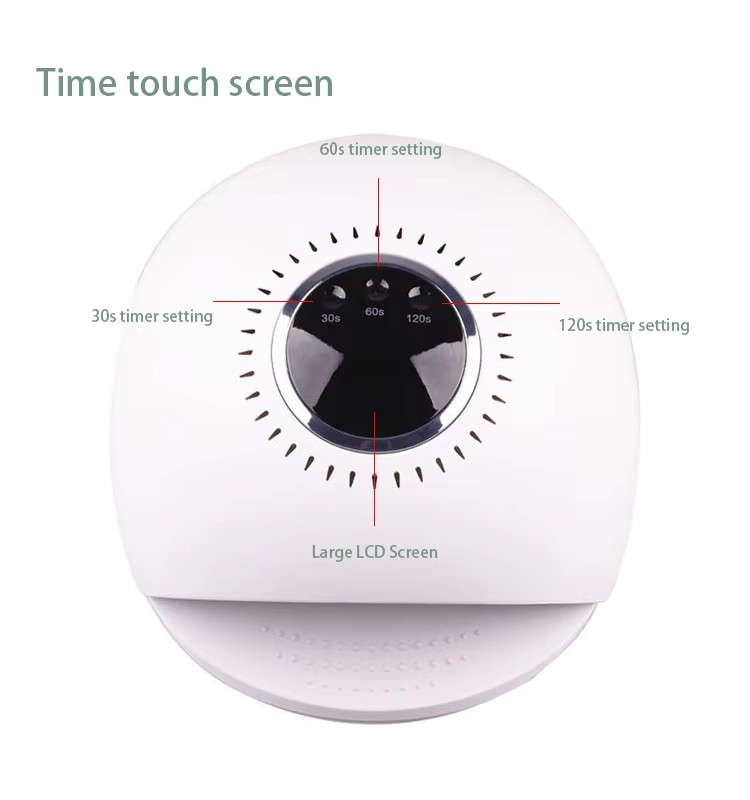 1)Lampu Profesional Polis Polis Kuku Profesional Versi Produk 60W Desain Tampilan Permukaan dengan LCD LCD Display Layar, Tampilkan Fungsi Produk dan Pengaturan Waktu Curing Secara Sekilas, Pelanggan dapat mengatur berbagai fungsi dan waktu sesuai dengan permintaan.