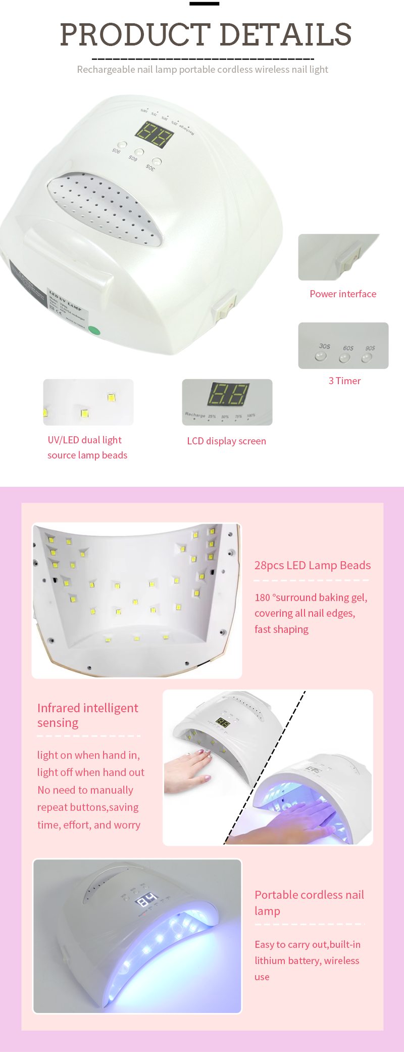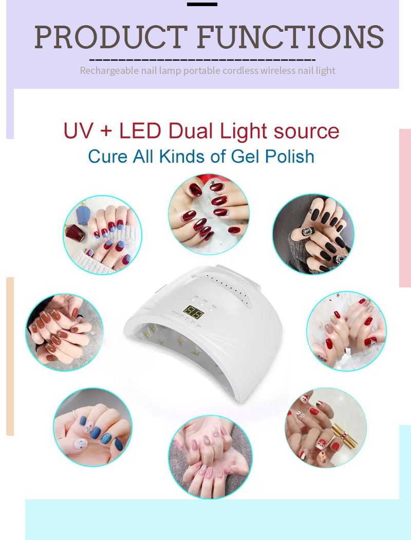 Produk ini memastikan pengeringan lem merata tanpa penyusutan. Sumber cahaya gandanya memberikan pemanasan lembut untuk mencegah perubahan warna pada tangan dan ketegangan mata, cocok untuk tangan dan kaki, memberikan hasil pengeringan yang sangat cepat.