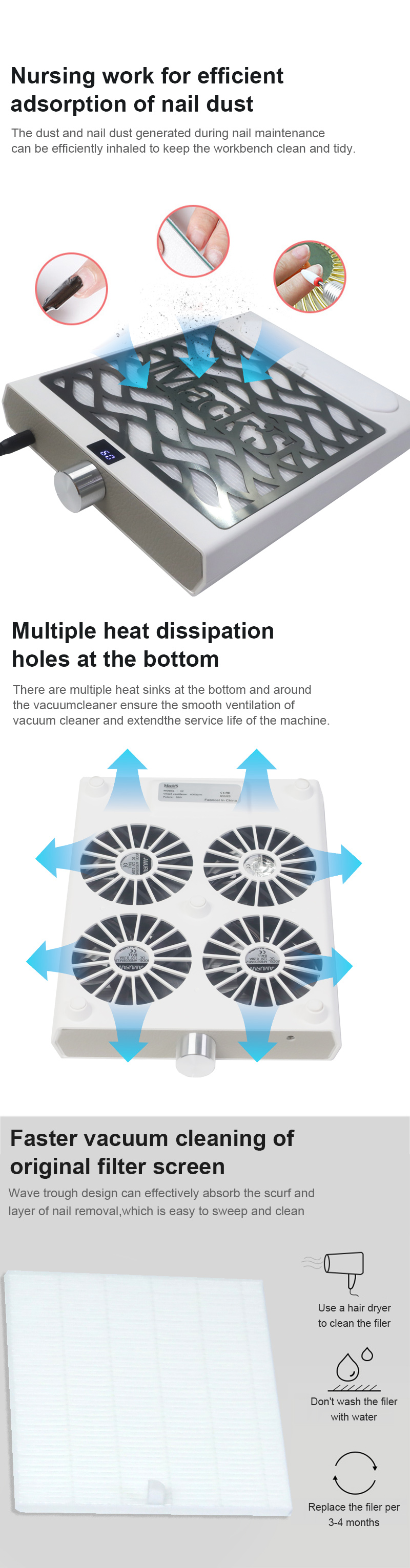 Produk adsorpsi yang kuat dari serpihan kuku tidak membocorkan debu, menjaga meja tetap bersih dan rapi, menyedot debu dengan cepat tidak membocorkan debu dengan daya tinggi lebih efisien.