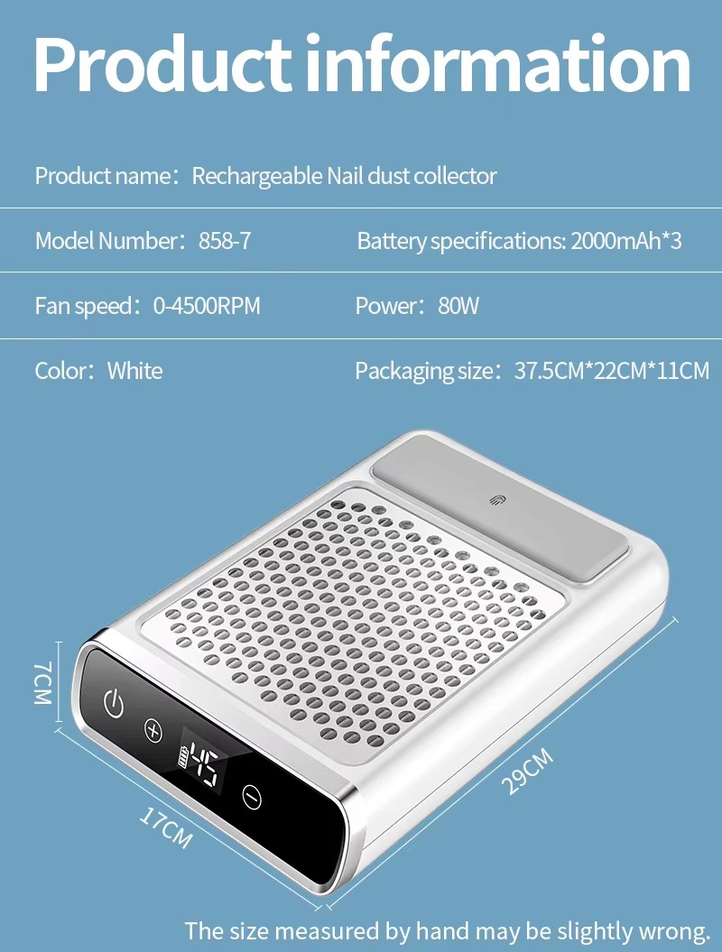 Produk Adsorpsi yang kuat dari puing -puing kuku tidak membocorkan debu, menjaga meja tetap bersih dan rapi, penghisap cepat tidak bocor debu daya tinggi lebih efisien.