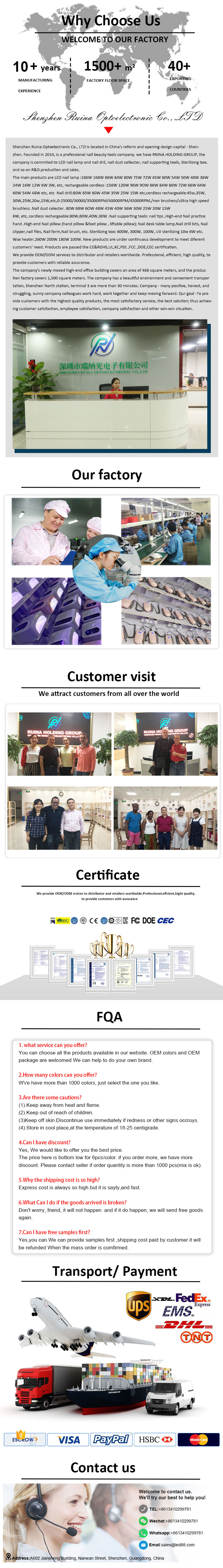 한국어Shenzhen Ruina Optoelektronik Co, Ltd. produsen, pemasok dan eksportir Bor Kuku Gel Premium Baru China terkemuka. Mengikuti pengejaran kualitas produk yang sempurna, sehingga Bor Kuku Gel Premium Baru kami telah dipuaskan oleh banyak pelanggan. Desain ekstrem, bahan baku berkualitas, performa tinggi, dan harga bersaing adalah dambaan setiap pelanggan, dan itu juga yang bisa kami tawarkan kepada Anda. Tentu saja, yang juga penting adalah layanan purna jual kami yang sempurna.