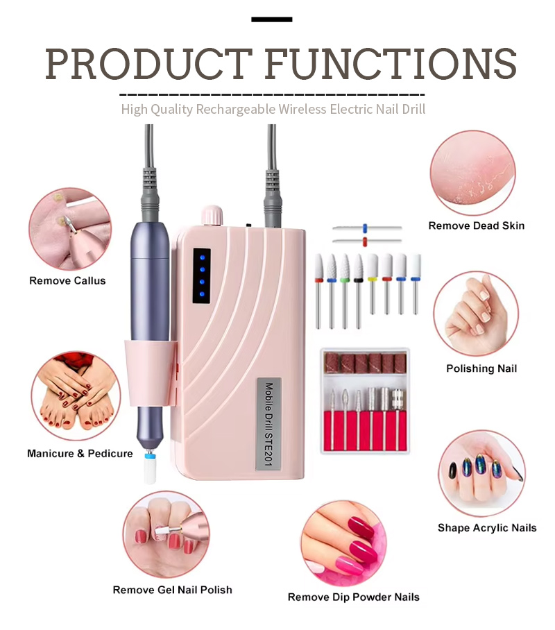 Set Bor Kuku Isi Ulang Bor Kuku Di Jari Kaki 35W 35000Rpm