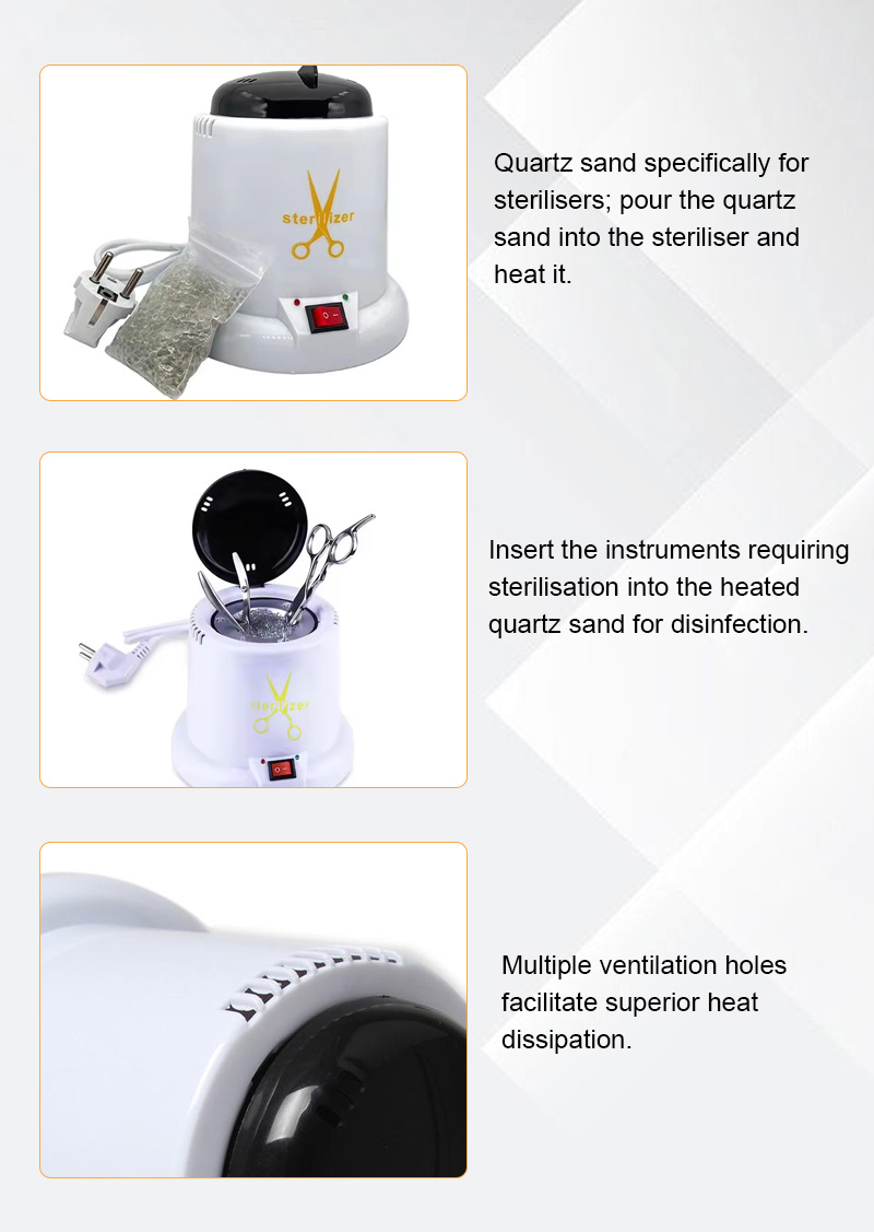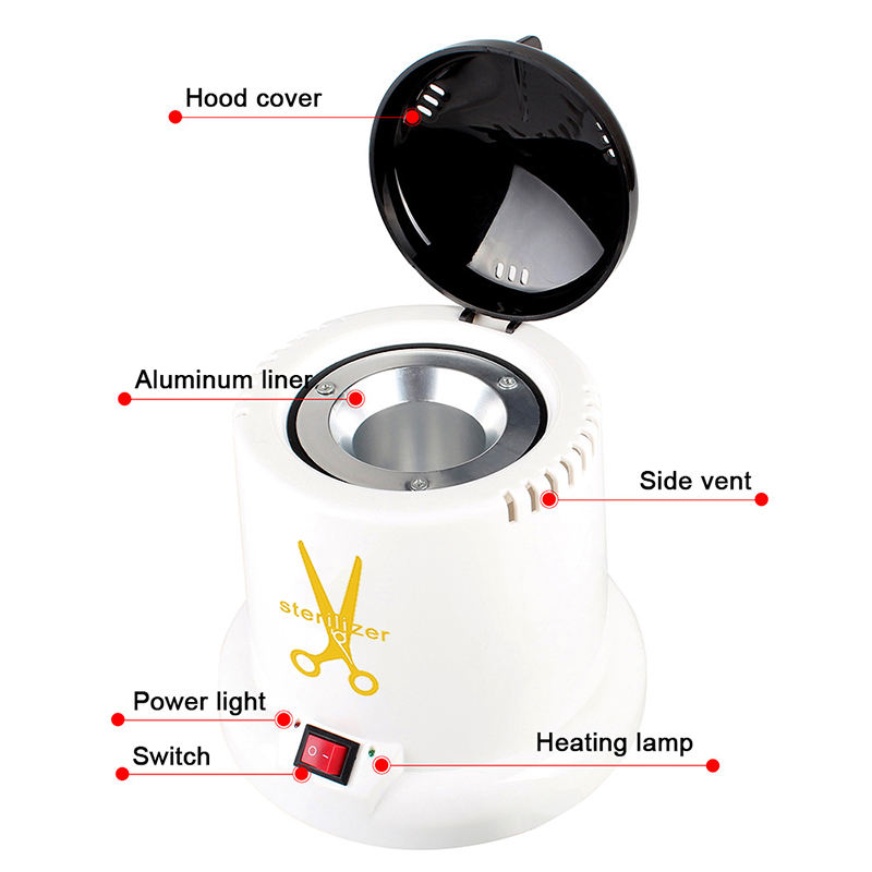 Alat sterilisasi ini terutama menghasilkan panas melalui cincin pemanas, memanfaatkan suhu tinggi untuk disinfeksi.
