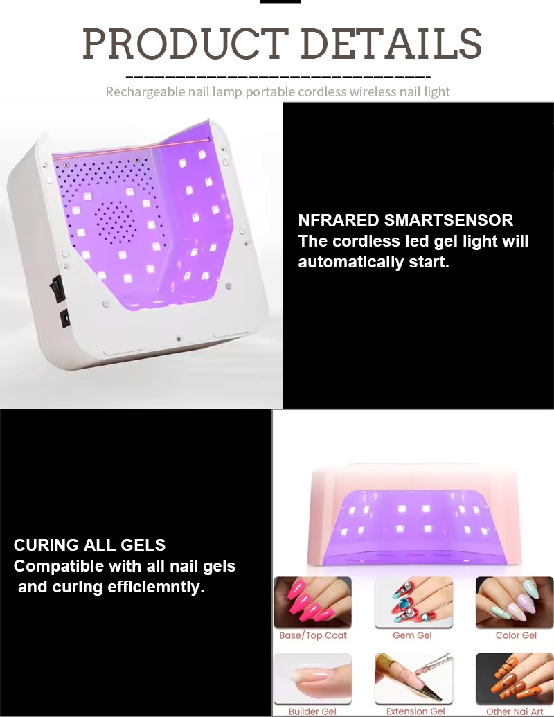 Lampu pengering kuku persegi dilengkapi teknologi penginderaan cerdas inframerah yang otomatis menyala saat tangan mendekat dan mati saat tangan menjauh—menghilangkan kerumitan menekan tombol berulang kali serta menghemat waktu dan tenaga. Lem kue berkekuatan tinggi tidak perlu menunggu lama, sehingga menghemat waktu dan tenaga.